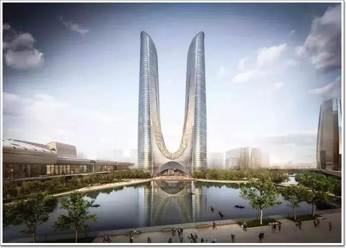 這一套成熟的「意向」設(shè)計邏輯,讓人感覺具有中國特色的規(guī)劃逐漸成形。「北斗七星」是指七幢超高層(詞條“超高層”由行業(yè)大百科提供)地標,其中「天權(quán)、天璣」兩顆星,是美國老牌建筑事務(wù)所SOM設(shè)計的杭州之門(詞條“門”由行業(yè)大百科提供)——雙塔(城市之門)。