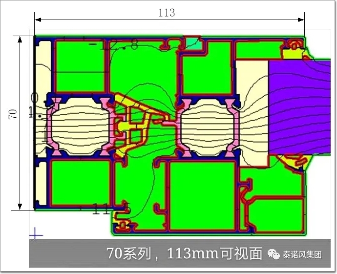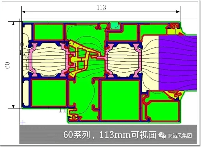 當可視面寬度為113mm時,60系列的Uf值為2.15W/m²K,65系列的Uf值為2.18W/m²K, 70系列的Uf值為2.21W/m²K。
