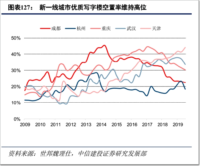 據(jù)世邦魏理仕數(shù)據(jù),2019年,天津、重慶、西安、武漢等地寫(xiě)字樓空置率超過(guò)30%,廈門(mén)、成都超過(guò)20%。