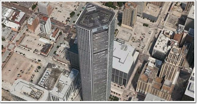 不過這個世界上總有例外,比如在美國休斯頓,就有一座叫做摩根大通大廈的建筑,外表是五邊形的結構,卻真的達到了305米,也就是達到超高層建筑的高度。雖然用現在眼光來看,305米的高度并不是很高,但是作為一座建成于1982年的建筑,這里在建成時其實算是全美第6,世界第8的建筑了。
