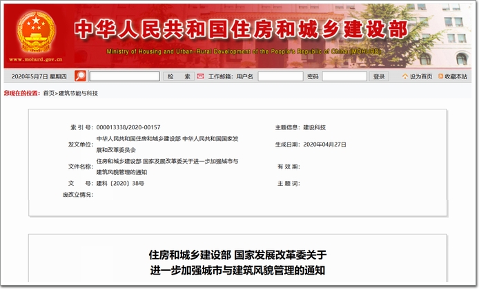 日前,住房和城鄉建設部和國家發展改革委發布《關于進一步加強城市與建筑風貌管理的通知》(簡稱《通知》),《通知》指出,為貫徹落實“適用、經濟、綠色、美觀”新時期建筑方針,治理“貪大、媚洋、求怪”等建筑亂象,進一步加強城市與建筑風貌管理,制定多項內容。