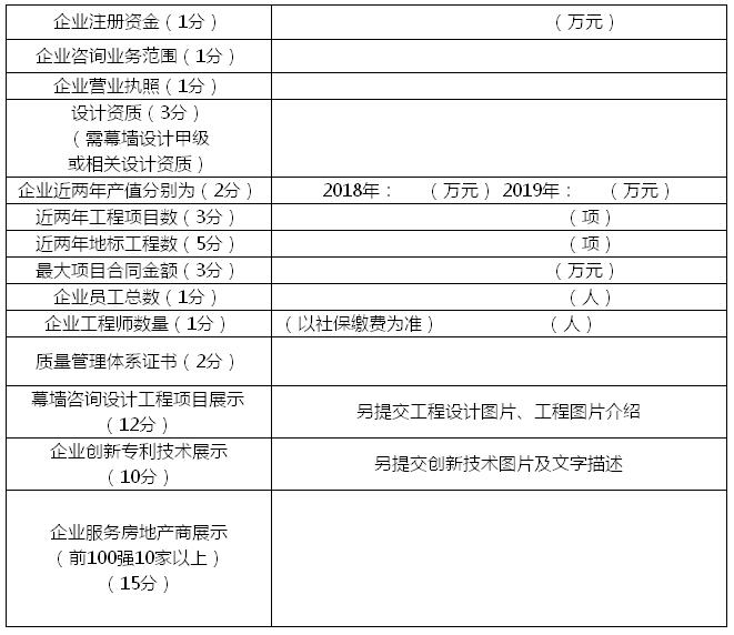 (1)提交相關資料包括企業的:營業執照、設計資質、聯盟會員證書、上年度產值、人員社保、質量管理體系證書、上兩年度幕墻工程咨詢合同、創新技術展示及工程設計展示、服務房地產商信息等。按照附件中相應表格方式填寫提交,所有信息及數據必須真實可靠(60分)。