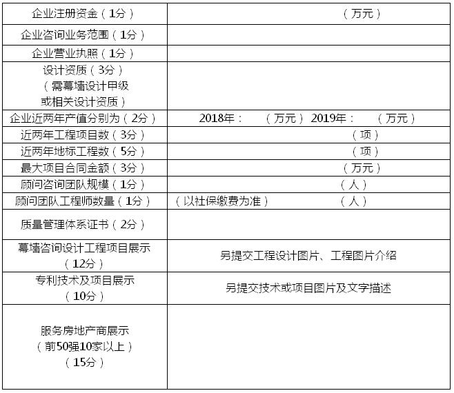 第五條 參評企業中建筑幕墻顧問咨詢公司類,應以建筑幕墻顧問咨詢為經營主項之一,且已加入“全國建筑幕墻顧問行業聯盟”的會員單位;建筑設計研究院類,應設立有專門的建筑幕墻設計與咨詢類分部或院所。