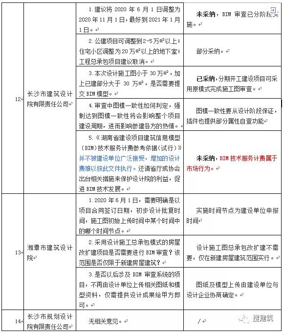 關(guān)于《湖南省住房和城鄉(xiāng)建設(shè)廳關(guān)于開展全省房屋建筑工程施工圖BIM審查工作的通知(試行)(征求意見稿)》意見采納情況
