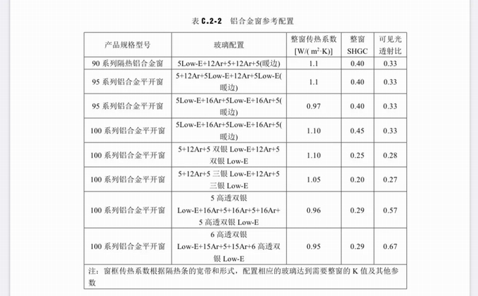 可以滿足本標準要求的門窗產品配置: