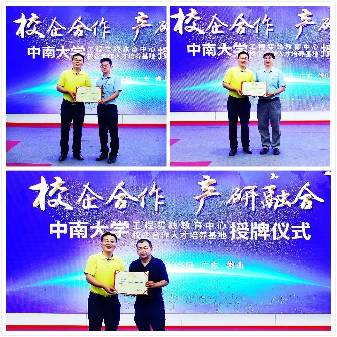 為加強校企產學研融合,2020年7月15日,中南大學“校企合作人才培養基地”和“工程實踐教育中心”授牌儀式在廣亞鋁業南海基地舉行。這是自2017年廣亞與中南大學合作成立廣亞鋁加工研究院以來,雙方合作的再度深化。