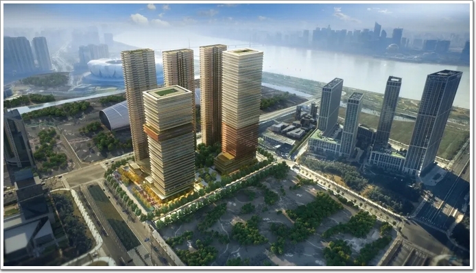 世茂·智慧之門位于浙江省杭州市濱江區,高度約達272米,建筑以兩條“綢帶”的光影變幻來呈現錢塘江潮汐的涌動與起落,讓這兩幢建筑充滿藝術的美感。項目建成后,將整合成為具備開源特質的世界級智慧平臺。