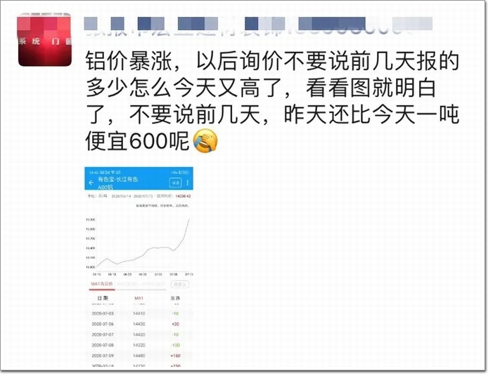 最近幾天鋁價持續上漲,各種漲價的圖片把整個門窗幕墻行業都給刷屏了,看得所有采購方心是拔涼拔涼滴,而生產企業也是誠惶誠恐滴!