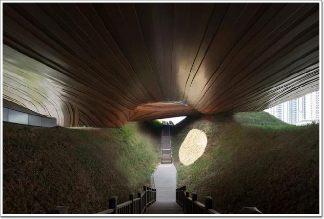 總之一系列的空間體驗(yàn),提供了一種難忘的游覽過程,將城市博物館中的“時(shí)間性”定義為一完整的路徑,并在通往天臺(tái)的設(shè)計(jì),激發(fā)了人們對于未來城市的討論,建筑山體提供另一種對于博物館開放空間的定義,有效通過表皮轉(zhuǎn)換為綠地,人們能穿越行走其中,延續(xù)公園的尺度,創(chuàng)造了一種城市活力,隨著時(shí)間的流逝,空間內(nèi)外呼應(yīng),構(gòu)成博物館的記憶,使它成為城市生活的一部分。