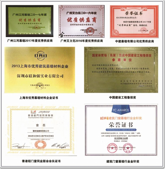 此外,聯和強還獲得了中國建筑門窗幕墻金軒獎,被專家評選入圍“極具影響力品牌”,是幕墻、門窗密封膠條的定點生產企業,變形縫國標的主編單位,產品滿足國標、美標、英標、德標、日標等系列標準。參與的鳥巢工程榮獲了建筑界的諾貝爾獎——魯班獎。多年來,聯和強與全球近千家行業伙伴單位展開廣泛合作,被江河、凌云、中建、廣田、艾力克等世界幕墻公司評為優秀供應商、戰略供應商、杰出戰略合作供應商,被世界多家知名幕墻公司定為合作伙伴。