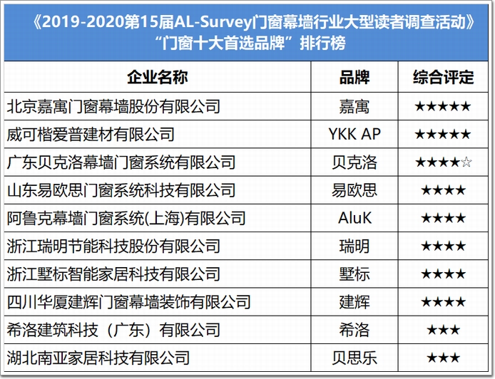 “系統(tǒng)門窗十大品牌”榜單
