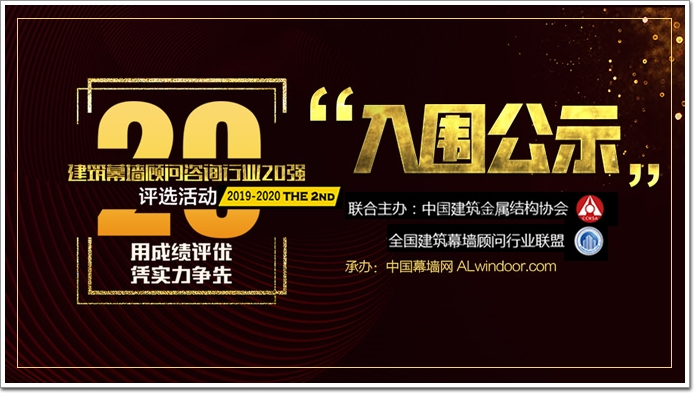 中國建筑金屬結構協會鋁(詞條“鋁”由行業大百科提供)門窗幕墻分會(以下簡稱:分會)與全國建筑幕墻顧問行業聯盟(以下簡稱:聯盟),將共同舉辦“2019-2020年度第二屆建筑幕墻顧問咨詢行業二十強”評選活動,并委托由中國幕墻網ALwindoor.com獨家承辦。旨在更好的推廣建筑幕墻顧問咨詢行業,與上游房地產業及建筑業之間的品牌價值建立,信息傳播及企業推廣。