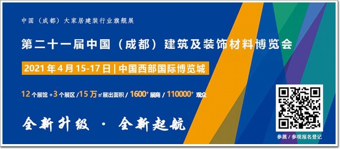 目前2021成都建博會全國招展招商已全面啟動,行業大牌紛紛入駐,展會推廣及觀眾邀請即將同步啟動。2021年4月15-17日,成都·中國西部國際博覽城,誠邀您共聚第二十一屆中國(成都)建筑及裝飾材料博覽會,共同撬動中西部大家居建裝市場的新機遇,搶占后疫情時代商機。
