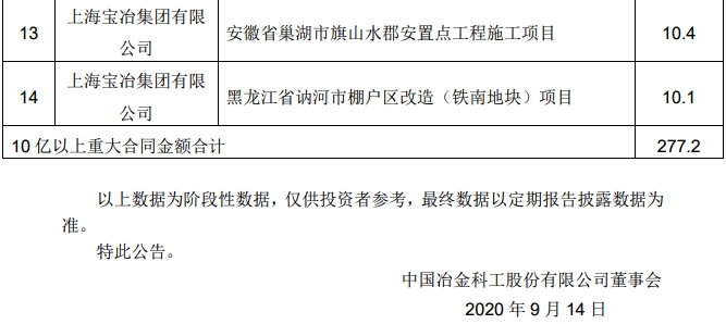 13,上海寶冶集團有限公司,安徽省巢湖市旗山水郡安置點工程施工項目,合同金額 10.4億元