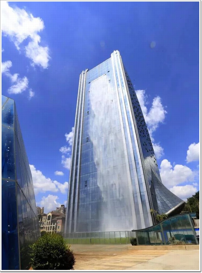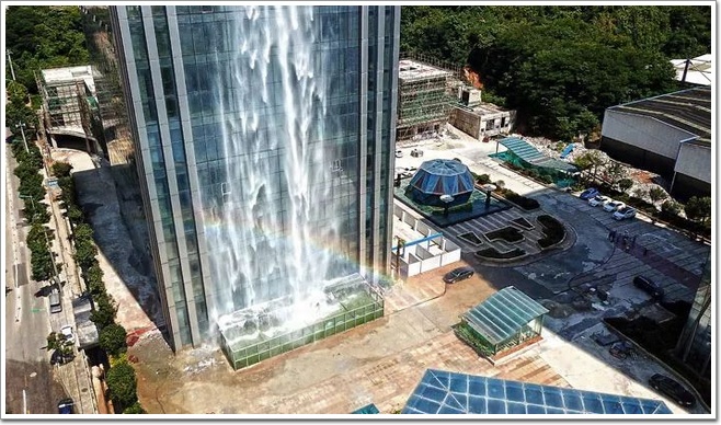 提到瀑布,人們腦海里的首先浮現的應該都是那些絕美的景色畫面,比如世界有名的尼亞加拉瀑布,飛屋環游記里的安赫爾瀑布,再有離我們近一點的黃果樹瀑布……,總之,不會與建筑聯系在一起,必定是中國地大物博,什么稀奇的景色都能遇到,從百米高樓上傾瀉而下的瀑布您沒見過吧,中國幕墻網ALwindoor.com小編今天就帶大家看一看這座特殊的瀑布建筑。