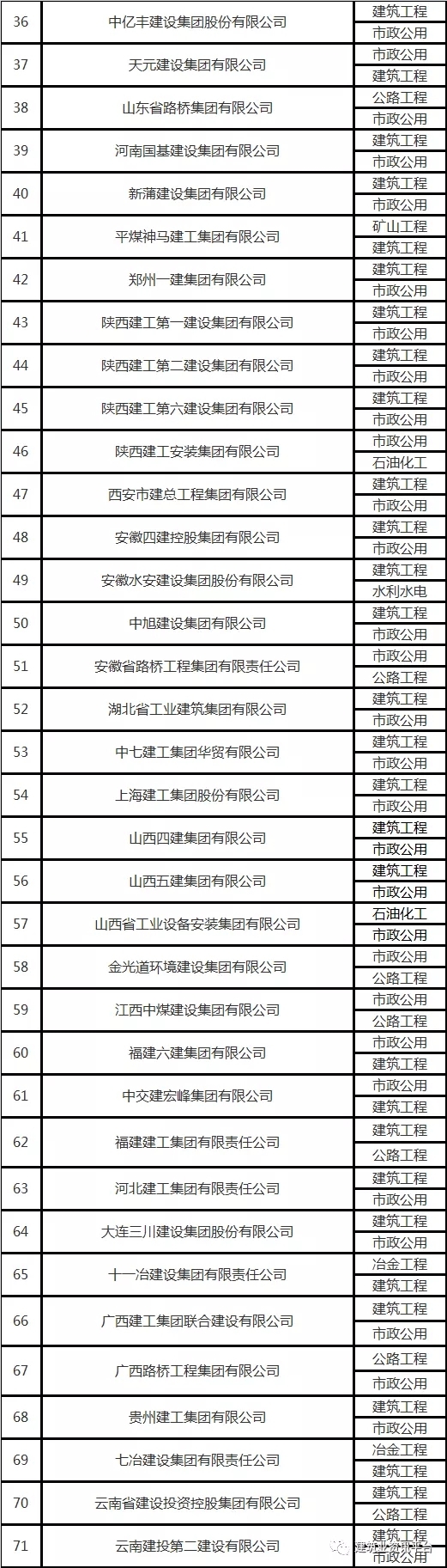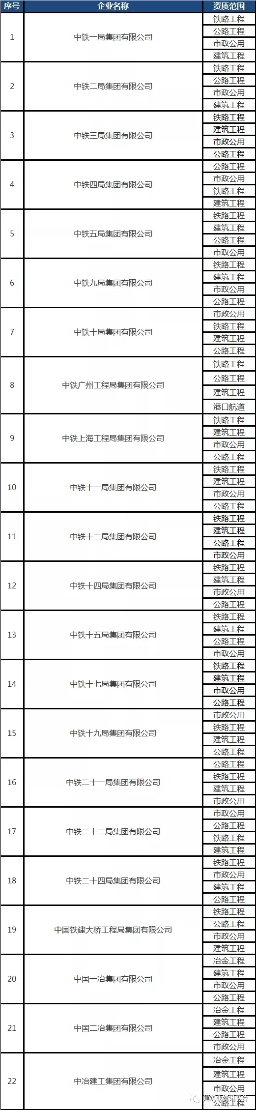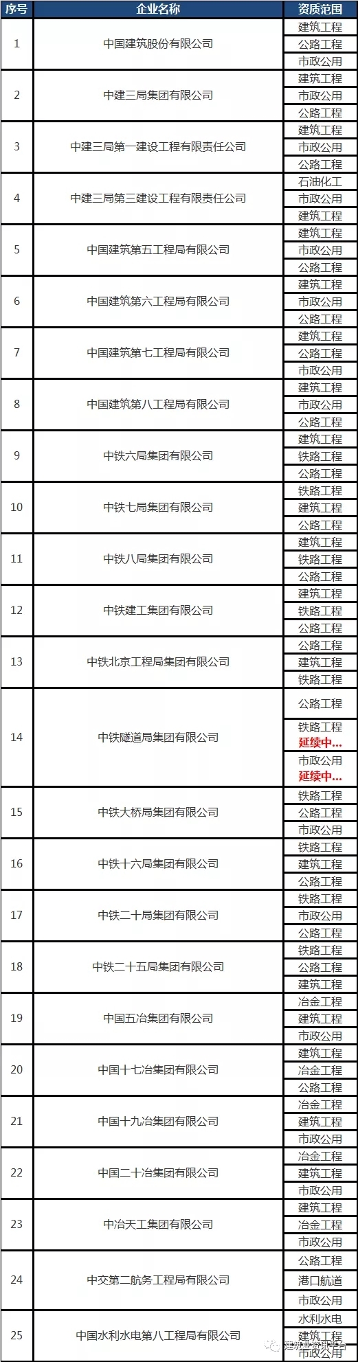 下面帶大家盤點一下那些擁有總承包特級資質(zhì)的企業(yè)名單: