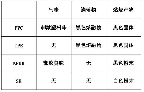 通?赏ㄟ^火焰燃燒的方法來辨別密封條的種類,不同種類的密封條燃燒時有不同的現象,詳見表2和圖1。