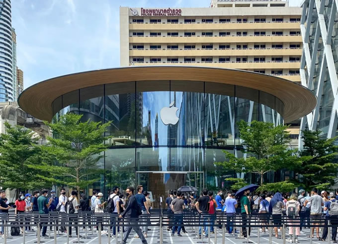 泰國(guó)中央世界蘋(píng)果店坐落在曼谷地標(biāo)差帕頌十字路口的中心地帶, 中央世界(Central World)匯集了世界一流的品牌和特色商店。