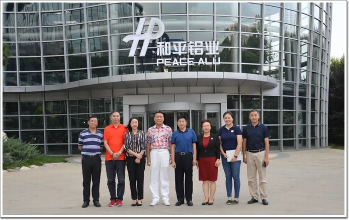 北京和平鋁業有限公司董事長郭濤,副總裁、三河和平鋁材廠有限公司總經理靳云雁,北京和平管莊鋁型材有限公司總經理楚江,北京和平幕墻工程有限公司總經理王有青,三河和平鋁材廠有限公司市場總監張東陪同宋為民秘書長一行參觀了“和平鋁業”的展廳及車間。