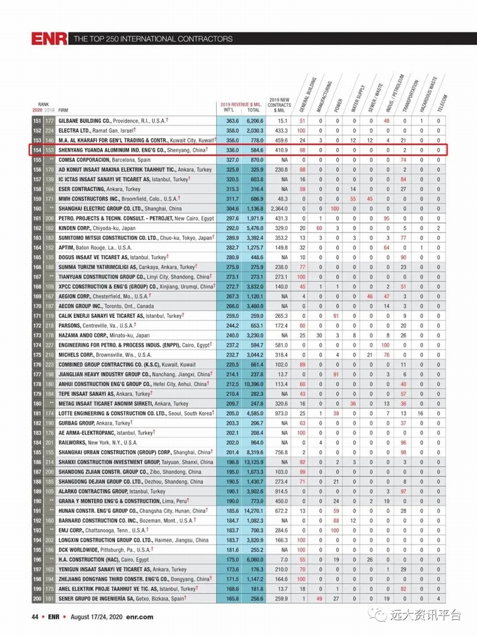 ENR榜單是國際工程界公認的、較為全面反映年度國際工程市場發展狀況的權威排名,具有極高的權威性和廣泛的影響力,堪比工程界的“《財富》世界500強排行榜”,同時也為業主提供了極高的參考價值。從另一方面也反映了沈陽遠大鋁業工程有限公司作為全球唯一入選的幕墻企業已經得到了國際市場的肯定與信任。