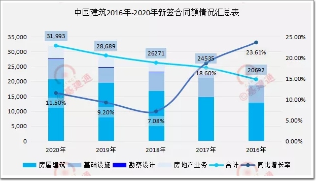 五年時間,從 2 萬億到 3 萬億,這萬億元的增長額,幾乎已經是某建筑央企最新一年的全年累計新簽額了。不得不說,中國建筑實在無愧于最大工程承包商的江湖地位!