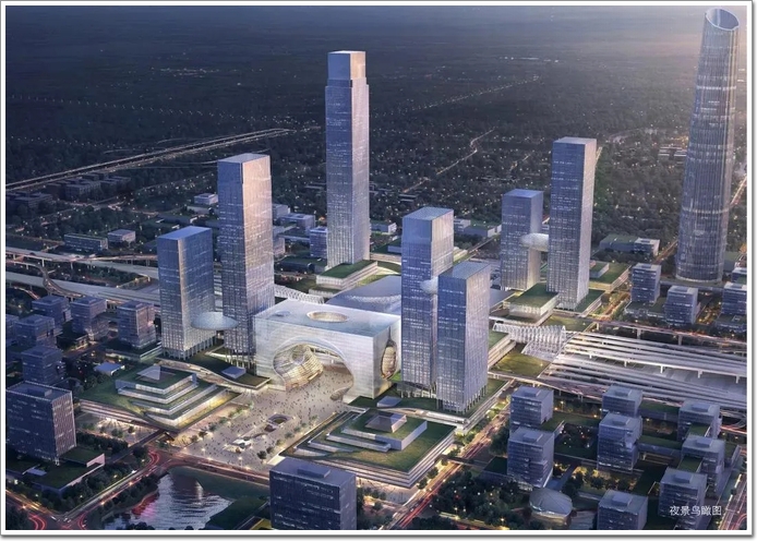 車站南北兩側(cè)共規(guī)劃了4幢高層辦公樓,其中包含1幢399米高樓,1幢320米高樓!
