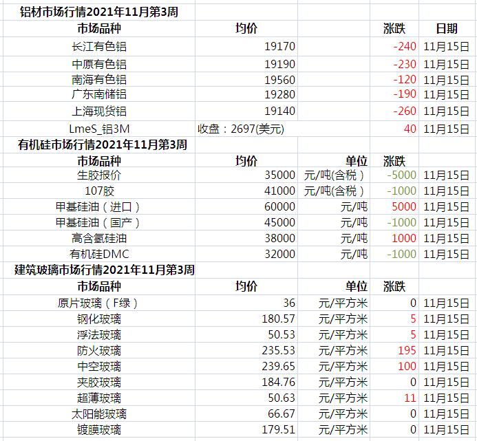 此原材料價(jià)格由中國幕墻網(wǎng)收集整理,僅供參考!