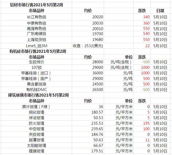 此原材料價格由中國幕墻網收集整理,僅供參考!