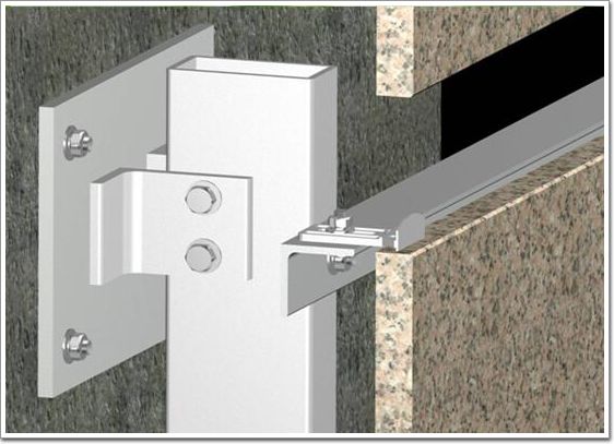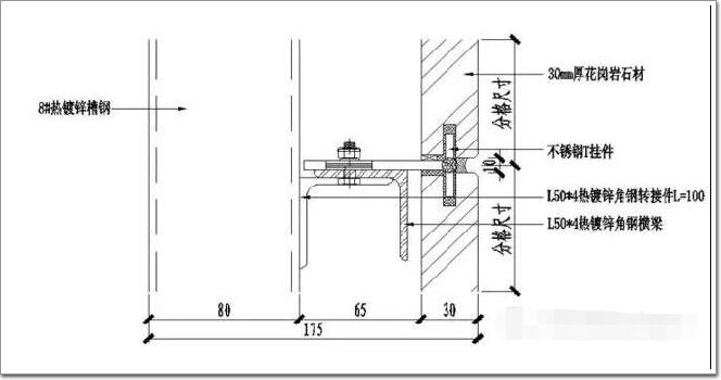 石材干掛法又名空掛法,是當(dāng)代飾面飾材裝修中一種新型的施工工藝。以金屬掛件將飾面石材直接吊掛于建筑結(jié)構(gòu)或空掛于鋼架之上,不需再灌漿粘貼。其原理是在主體結(jié)構(gòu)上設(shè)主要受力點(diǎn),通過(guò)金屬掛件將石材固定在建筑物上。