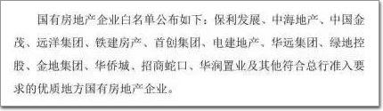 在一份行業(yè)盛傳的白名單中,保利、中海、金茂、華潤(rùn)、招商、遠(yuǎn)洋、金地等大型房企赫然在列,其他地方優(yōu)質(zhì)國(guó)企也在被支持的范疇。