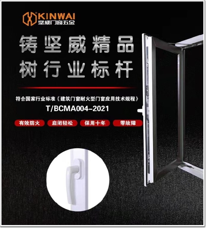 在這樣的背景下,堅威堅持科技創新、技術研發,在防火窗耐火窗五金系統領域取得突出成績,自主研發了堅威內平開/NH89-26M歐標20C槽型材耐火窗五金系統、JW-NH89-26C 20C槽歐標外開型材耐火窗五金系統、JW-NH89-26M 20C槽上懸歐標型材耐火窗五金系統、JW-NH89-26UM U槽塑鋼內開型材耐火窗五金系統、JW-NH89-26UM U槽塑鋼外開型材耐火窗五金系統、JW-NH8006H U槽塑鋼上懸型材耐火窗五金系統、JW-NH89-26F H60鋼質外開型材防火窗五金系統、JW-NH8006H H60鋼質上懸防火窗五金系統等。產品不僅達到各項標準要求,還不斷創新,榮獲多項專利證書,成為行業內知名的創新型企業,在高質量發展道路上堅定不移、砥礪前行。