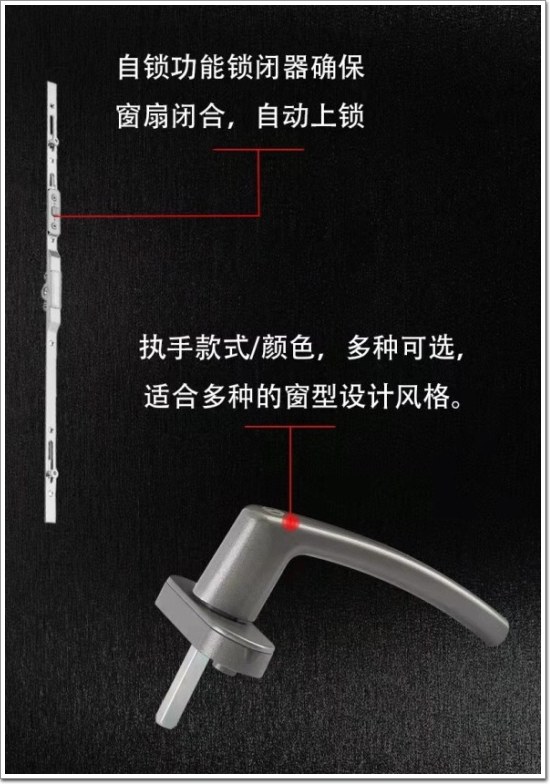 智能設計,自動鎖閉|自動功能鎖閉器確保窗扇閉合,自動上鎖。執手款式/顏色,多種可選,適合多種的窗型設計風格。