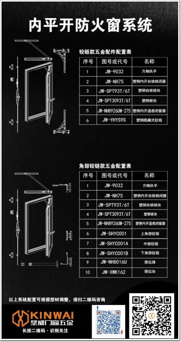 精品工藝,細節展示|另配有鉸鏈款與角部鉸鏈款五金配件配置表,可詳細了解各部件及參數情況。極致細節,全面展示,性能恒久,歡迎選購。