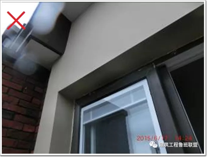 1、工序錯誤:外立面保溫層/飾面層施工完成后 ,進行采光窗的安裝,導致采光窗頂部玻璃與保溫層/飾面層直接相連,產生滲漏通道。