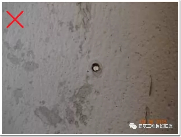 2、封堵措施不到位:穿墻螺桿PVC套管未清除干凈;封堵前,螺桿眼內灰塵未清理干凈;