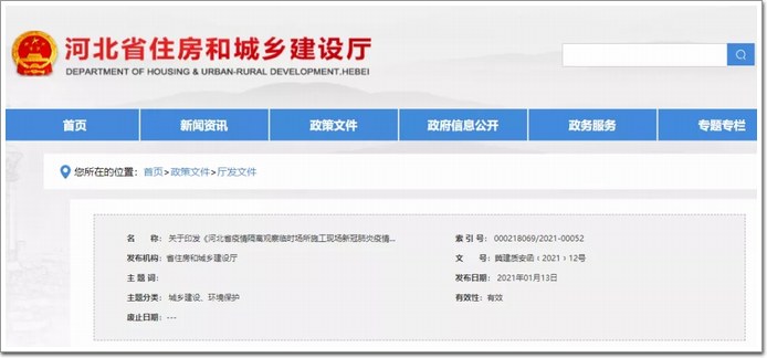 關(guān)于印發(fā)《河北省疫情隔離觀察臨時(shí)場所施工現(xiàn)場新冠肺炎疫情防控工作指南》的通知