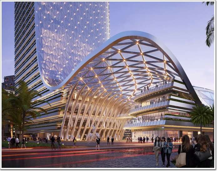 建筑外立面通雙曲面異形幕墻,營造出起伏的“海浪”場景,不僅創造了獨特的建筑空間,同時也呼應了城市的海洋特色,創造出動感浪漫的城市天際線。