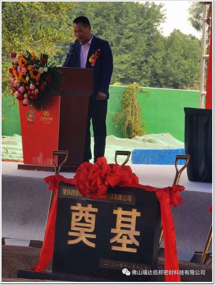奠基儀式現(xiàn)場,瑞達(dá)佰邦總經(jīng)理趙魁偉先生代表簽約企業(yè)家,上臺發(fā)表了精彩致辭與演講,并與四會市市長等各級領(lǐng)導(dǎo)深入交流了未來的發(fā)展趨勢與企業(yè)規(guī)劃,表明了企業(yè)將在各級政府正確領(lǐng)導(dǎo)下,堅(jiān)定不移地走好高質(zhì)量發(fā)展之路,為繁榮地方經(jīng)濟(jì)發(fā)展做出應(yīng)有貢獻(xiàn)。