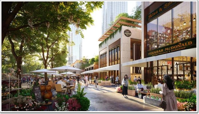 設計以綠色宜居環(huán)境,為新型產業(yè)升級賦能。通過塔樓布局的移位調整,在片區(qū)中部形成東西向的活力軸,依次設置未來中心廣場、慶典廣場、精釀廣場,營造大量公共空間,在產業(yè)云集的高密度城市環(huán)境中,形成尺度宜人且具凝聚力的城市核心。