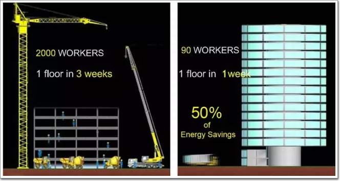 這些由鋼鐵,鋁,碳纖維等高品質現代材料制成的預制裝置,通過現場“機械式”安裝,這樣施工時間短,使用工人少,從而降低了現場風險,并能節省50%的成本。