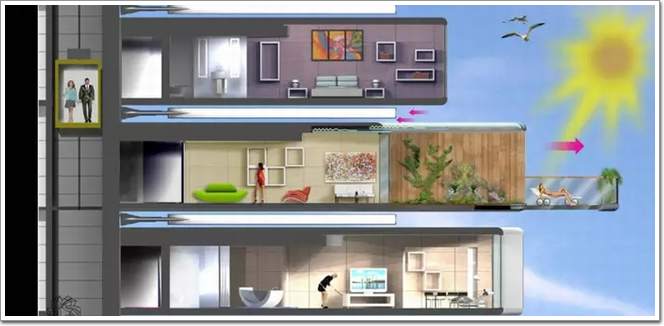 大樓的旋轉速度快慢可以通過語音控制,這樣就能跟隨陽光旋轉公寓,或者停止留在陰涼處。