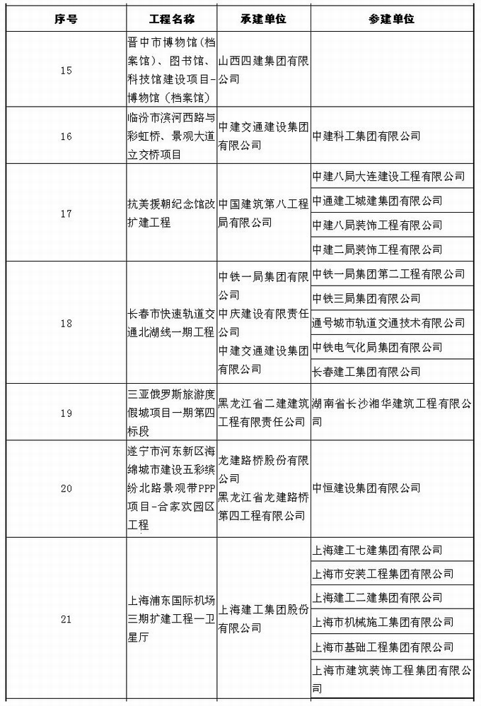 2020~2021年度第一批中國(guó)建設(shè)工程魯班獎(jiǎng)(國(guó)家優(yōu)質(zhì)工程)入選名單