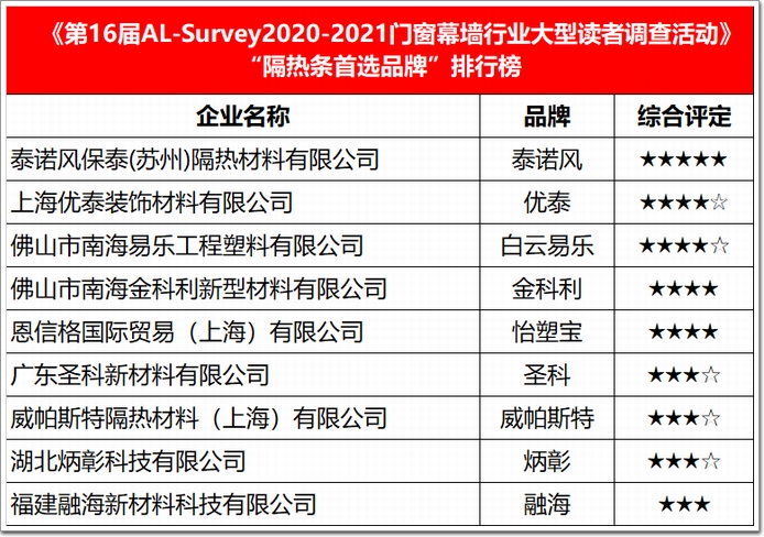 “隔熱條類”排行榜