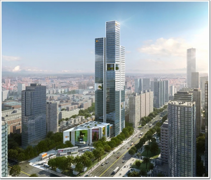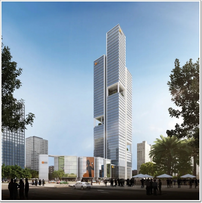 猶如一把筷子,捆綁在一起就變得更加堅固,這一比喻用在塔樓的設計上。若干個小型塔樓組成塔樓主干,不僅造型優雅挺拔,還給人以團結堅固的印象。塔樓的頂層逐層后退,層層入云,必將成為深南大道中路上引人注目的地標建筑。