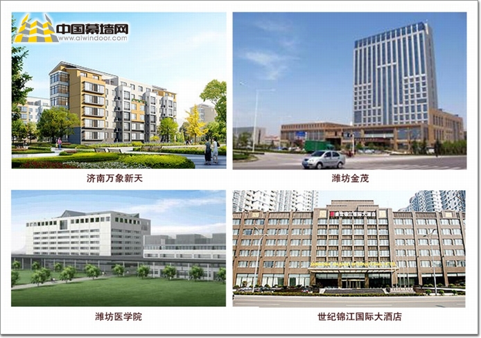 此外,順和與各大工程企業、房地產企業及門窗企業廣泛開展合作,積極參與到全國各地的大型工程項目建設中,其中極具代表性的工程有:濟南萬象新天、世紀錦江國際大酒店、濰坊佳樂家、濰坊金茂、濰坊醫學院等。