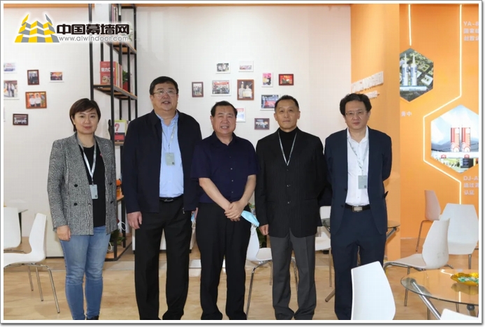 中國建筑金屬(詞條“金屬”由行業大百科提供)結構協會會長郝際平(左四)、中國建筑金屬結構協會秘書長宋為民 (右三)、中國建筑金屬結構協會鋁門窗幕墻分會會長董紅(右一)、中國建筑金屬結構協會鋁門窗幕墻委員會專家組專家、教授級高工姜成愛(左二)等行業領導蒞臨參觀指導