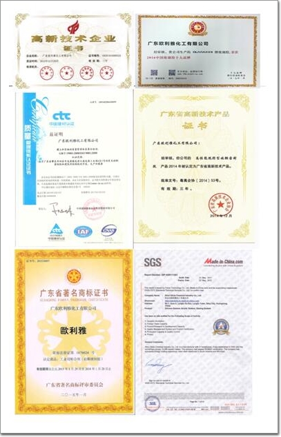 歐利雅在建筑膠領域精心耕耘二十九年,收獲了諸多榮譽與肯定,其中有高新技術企業證書、中國玻璃膠十大品牌、極具影響力品牌、高新產品證書、廣東省著名商標、ISO9001質量管理體系認證,由于在專業領域表現突出,被央視CCTV 發現之旅《匠心智造》欄目組選中為硅酮膠行業的匠心企業,拍攝紀錄片《歐利雅硅酮密封膠的發展之路》。