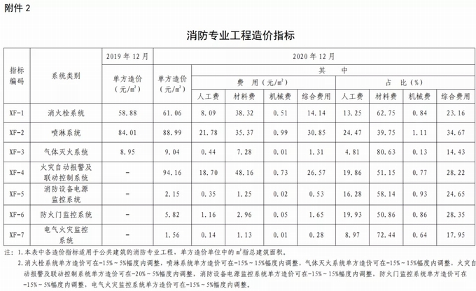 2.消防專業工程造價指標