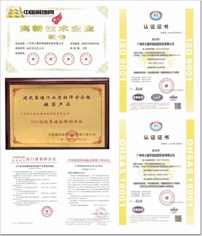 不僅生產(chǎn)線先進(jìn)完善,產(chǎn)品品質(zhì)更是卓越非凡。在推向市場的過程中,華士康收獲了滿滿的贊譽(yù)與肯定。這其中包括“建筑用硅酮密封膠生產(chǎn)推薦企業(yè)”榮譽(yù)稱號(hào)、“廣東省高新技術(shù)企業(yè)”殊榮,并通過ISO9001質(zhì)量管理體系認(rèn)證及18001職業(yè)健康安全管理體系認(rèn)證。