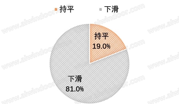 其中,鋁型材有接近一半的企業預估是上升的,其它的企業,認為上升的基本上都保持在20%左右,而幕墻企業中上升的比例最少,僅占比10%;同時玻璃和設備相對來說不太樂觀,有接近一半企業是下降。